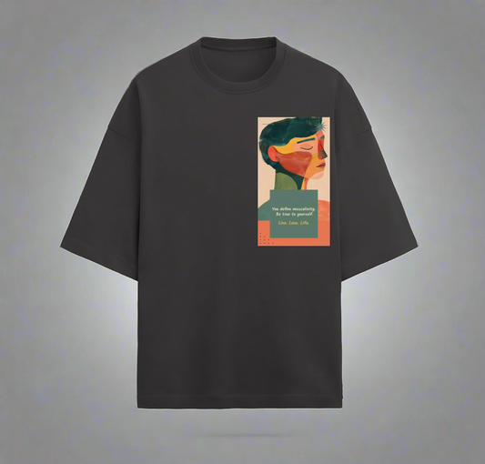Terry (280 GSM) Add Colours To Life Black Oversize T-Shirt For Men